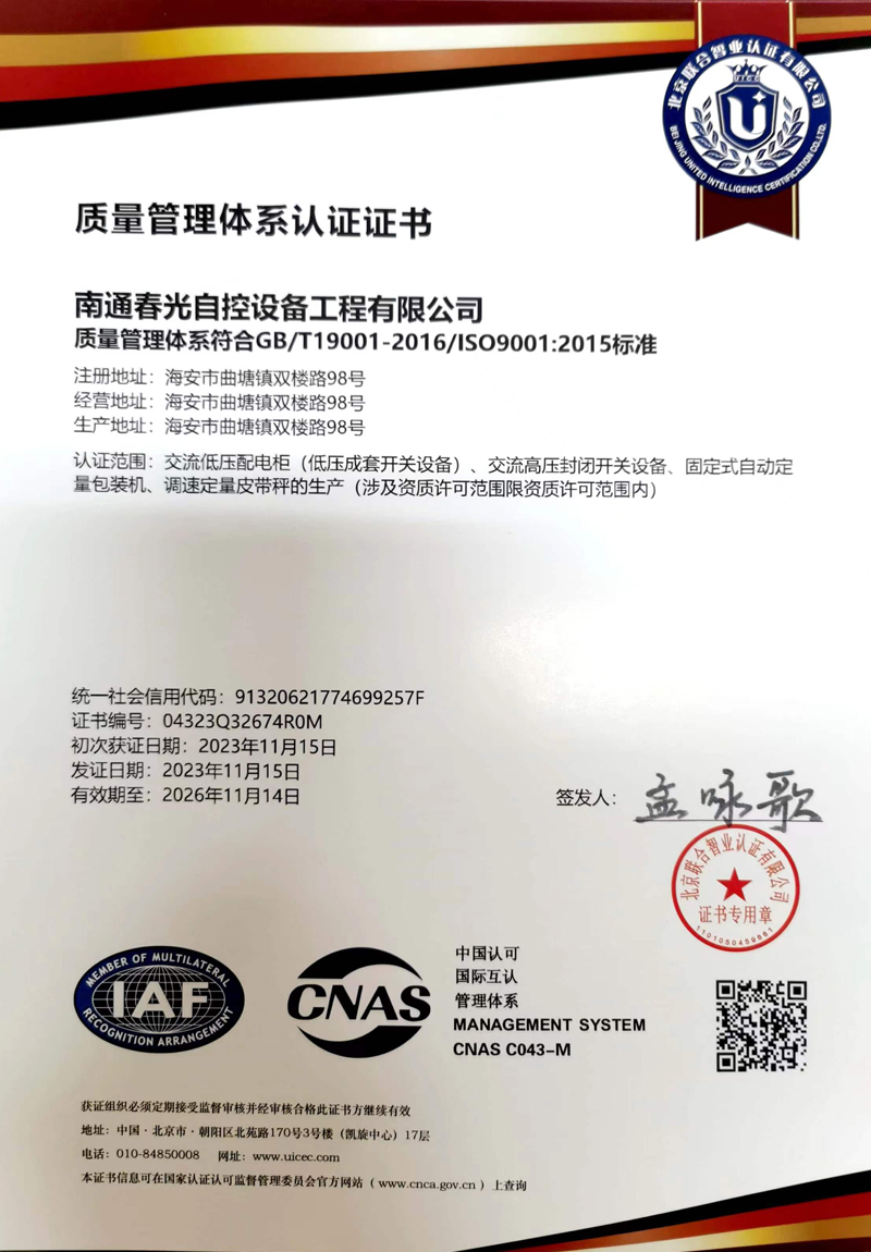 交流低壓配電柜認證證書
